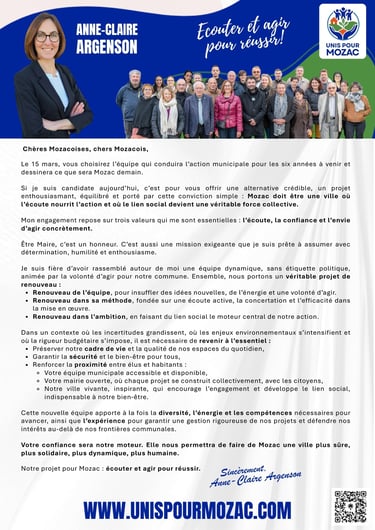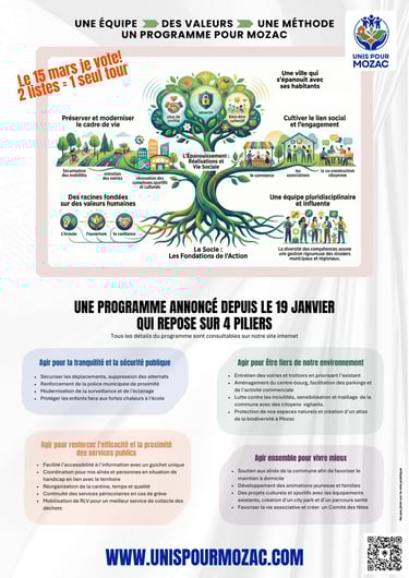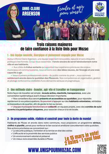 Nous sommes fiers de vous présenter l'affiche de la liste Unis pour Mozac.